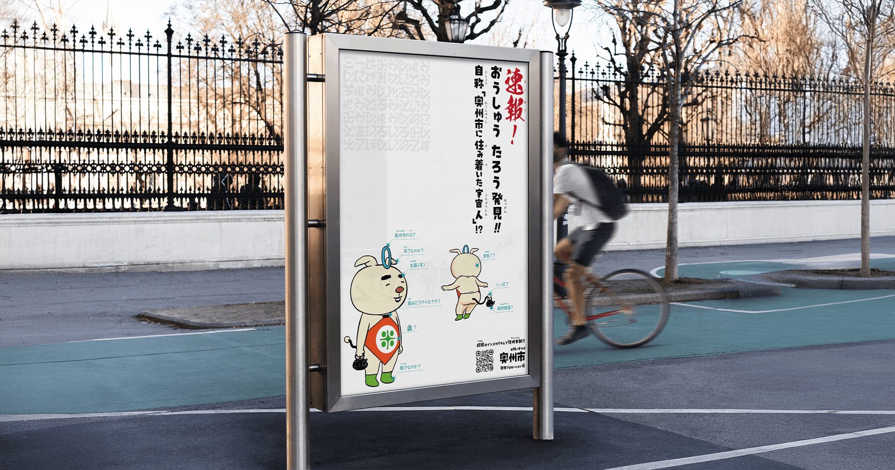 名前のない状態から始まったこのプロジェクトは、最終的に「おうしゅうたろう」という存在が市民の前に強烈なインパクトとともに現れる、最初の接点となりました。